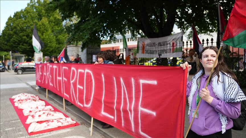 معترضان حامی فلسطین با برپایی تظاهراتی در پایتخت ایرلند مشارکت آمریکا در نسل کشی اجرا شده توسط رژیم صهیونیستی علیه نوار غزه را محکوم کردند.