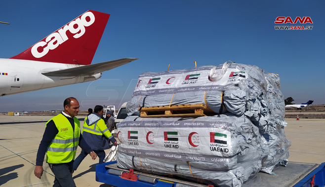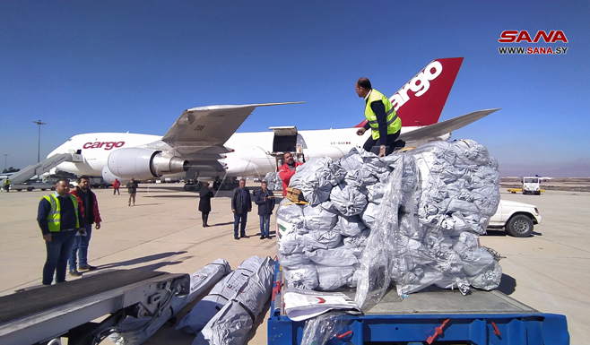 تا به امروز، دو هواپیمای حامل کمک برای زلزله زدگان سوری از کشور ارمنستان در فرودگاه بین المللی حلب بر زمین نشسته اند و به اعلام خبرگزاری سانا، هواپیمای دوم شامل 32 تن مواد غذایی، پزشکی و دارو برای زلزله زدگان بود.