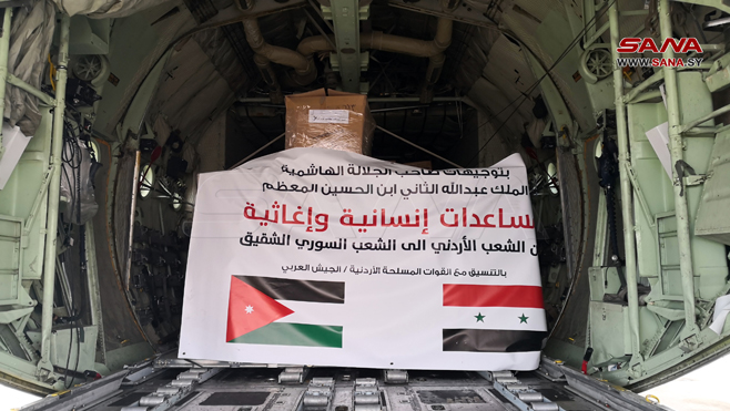 نخستین هواپیمای حامل کمک های اردن به سوریه، دیروز وارد فرودگاه بین المللی دمشق شد و «باسل الکاید» کاردار سفارت اردن در دمشق گفت که هواپیمای حامل کمک های بشردوستانه مردم اردن به دستور عبدالله دوم، شاه این کشور در اختیار مردم سوریه قرار گرفته است و اردن در این شرایط هر چه قدر که بتواند به سوریه کمک می کند و در کنار آن باقی می ماند.